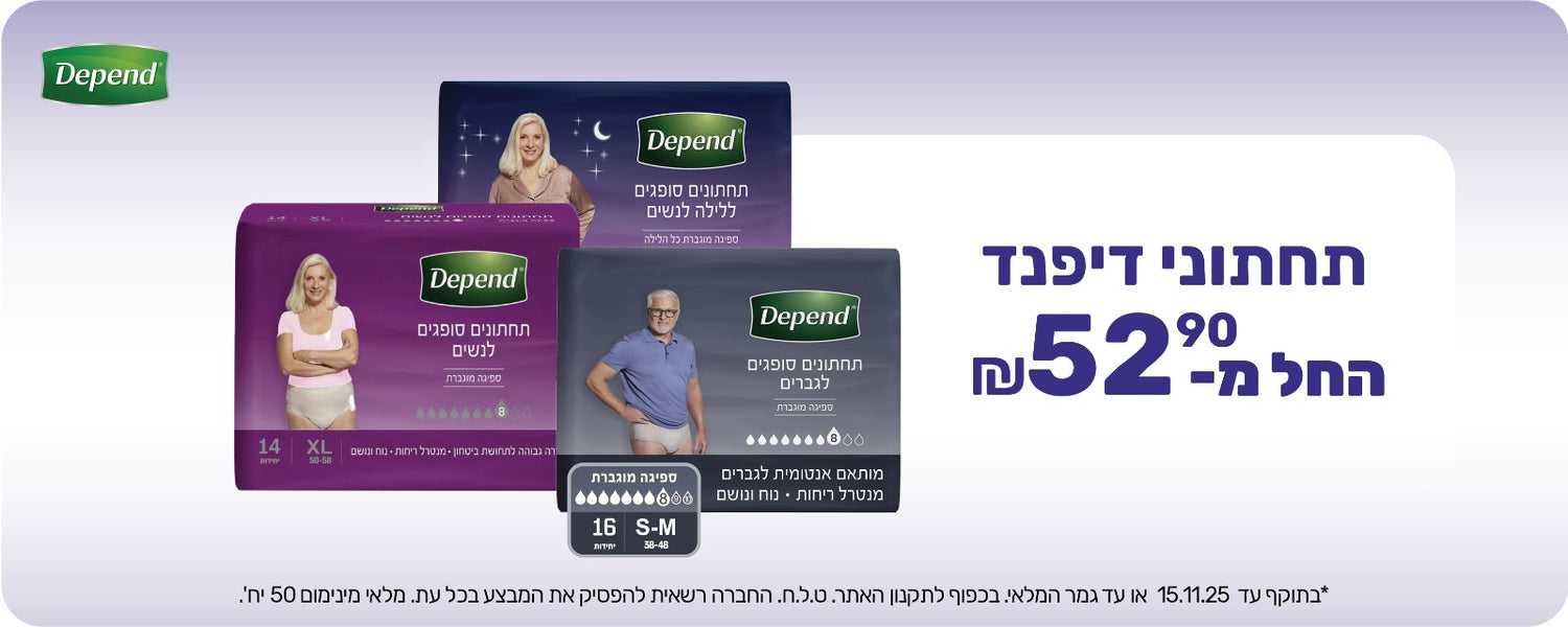 מחפשים חיתולים למבוגרים באיכות גבוהה ובמחיר משתלם? באיפארמה תמצאו מגוון רחב של מוצרי ספיגה – חיתולים, תחתונים סופגים, פדים ועוד – ממותגים מובילים כמו דיפנד, נועם NOAM, שקמה, ליל ואחרים.