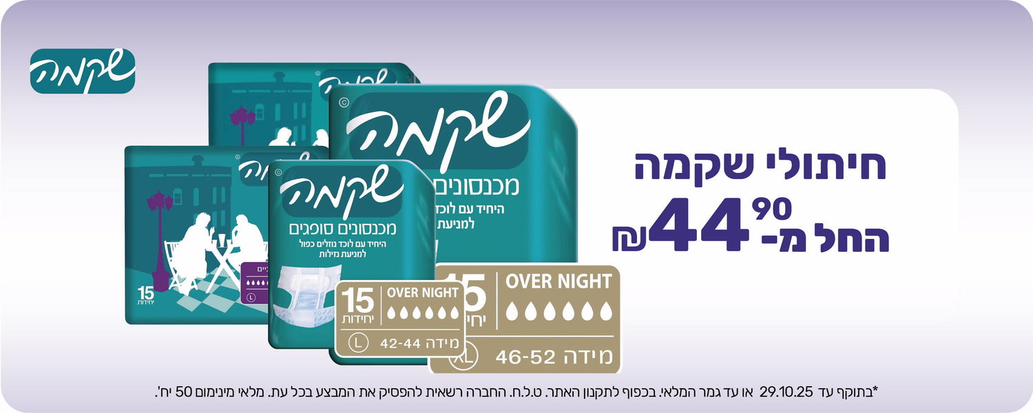מחפשים חיתולים למבוגרים באיכות גבוהה ובמחיר משתלם? באיפארמה תמצאו מגוון רחב של מוצרי ספיגה – חיתולים, תחתונים סופגים, פדים ועוד – ממותגים מובילים כמו דיפנד, נועם NOAM, שקמה, ליל ואחרים.