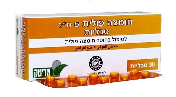 חומצה פולית 5 מ"ג טבליות מדיטק