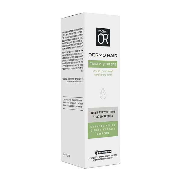 סרום מתקדם לטיפול בשיער דליל וחלש מבית דוקטור עור, המיועד להעניק מראה של שיער מלא, צפוף ובריא יותר. הפורמולה הייחודית פועלת בשלושה מישורים מרכזיים: חיזוק סיב השערה, עידוד צמיחת השיער והזנה מעמיקה של עור הקרקפת תוך שמירה על איזון אופטימלי. הסרום בעל מרקם קליל ונעים הנספג במהירות לתוך עור הקרקפת, ומותיר תחושה נעימה ורעננה למגע לאורך כל היום ללא כבדות או שומניות.