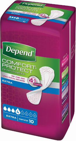 תחבושת DEPEND מותאמת לספיגת כמות שתן גדולה.