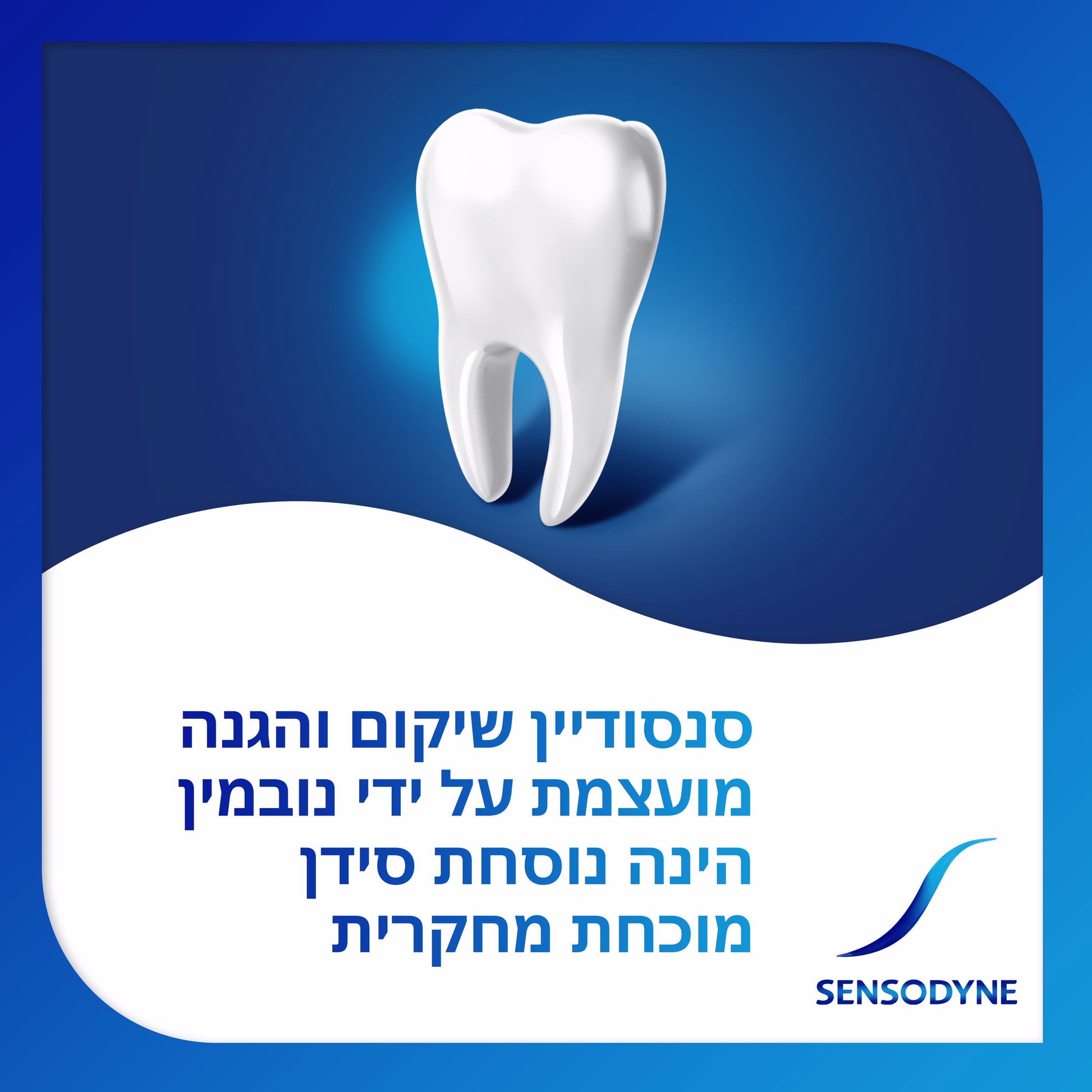 סנסודיין שיקום והגנה מועצמת על ידי נוסחת הנובמין שהוכחה מחקרית כמסייעת בשיקום אזורים פגיעים בשן.*